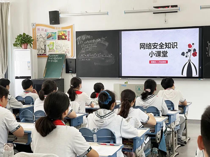 为贯彻习近平总书记“坚持法治教育从娃娃抓起”的要求,近日,栖霞区检察院关工委老同志与院第四检察部干警先后走进燕子矶高级中学和燕子矶新城中学,为这两所学校的同学们带去精心设计的网络安全法治教育课程视频,让同学们在检察法治小课堂中学习和了解网络安全知识,并通过网络安全问卷测试及时巩固学习效果,真正让这些知识成为保护学生自己及家人的有力武器。